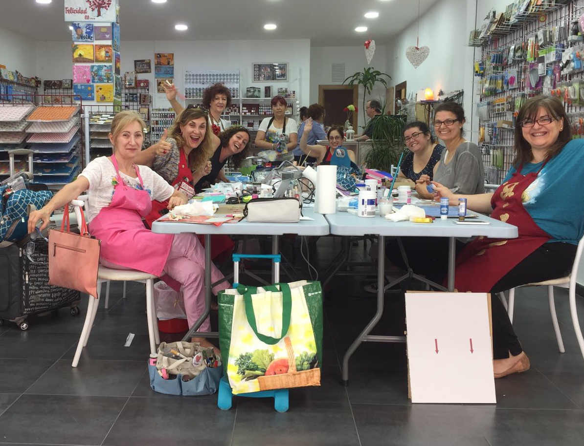 Para las que no lo sabéis hacemos una PequeCrop al mes , suele ser el ultimo sábado del mes, son talleres diferentes , solemos estar todo el día, jajajajajaja y  si , paramos a comer.
