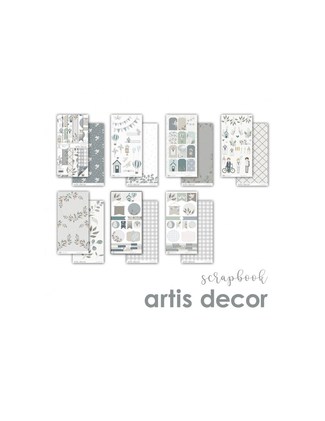 Esta colección de papel de scrap de la marca artis decor está compuesta por 6 hojas sueltas con diseños impresos a doble cara en tamaño 12x12" (30,5x30,5cm) y un bloc de 6 hojas también con diseños por ambas caras, en un tamaño de 6x12" (15x30,5cm) pensado para complementar a la colección grande.